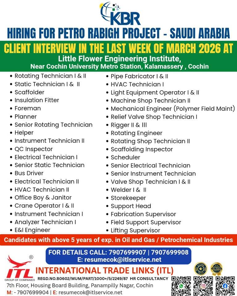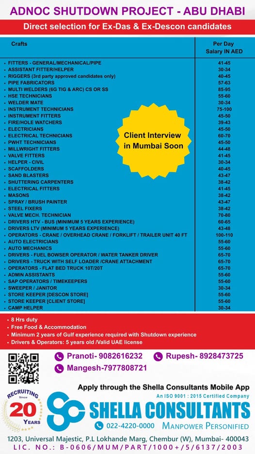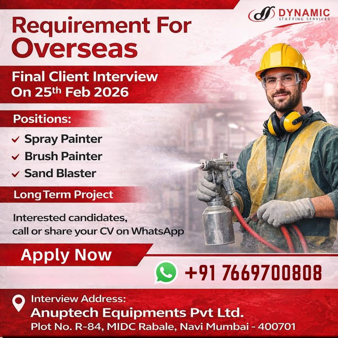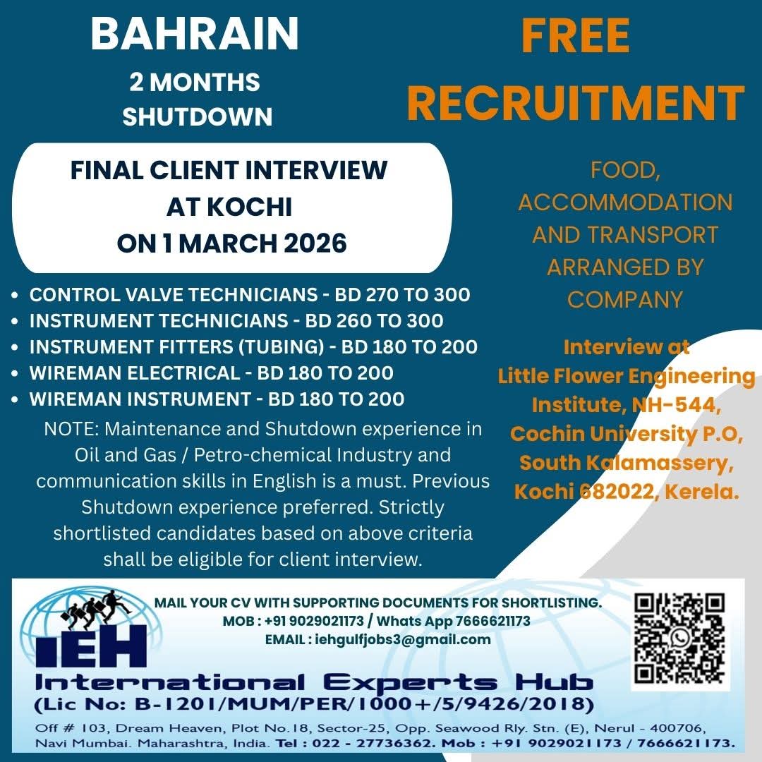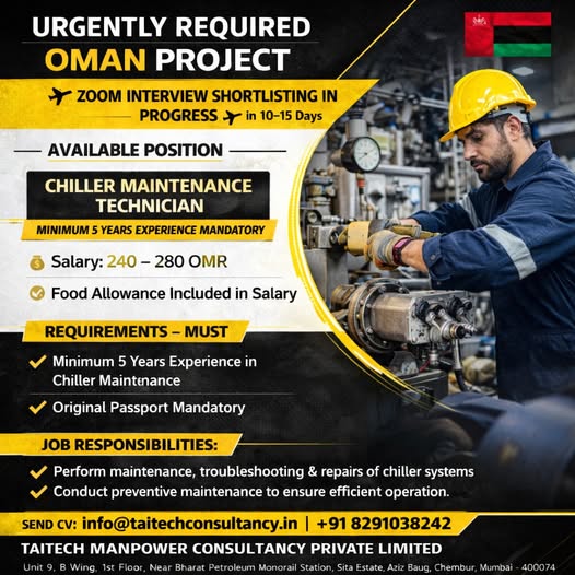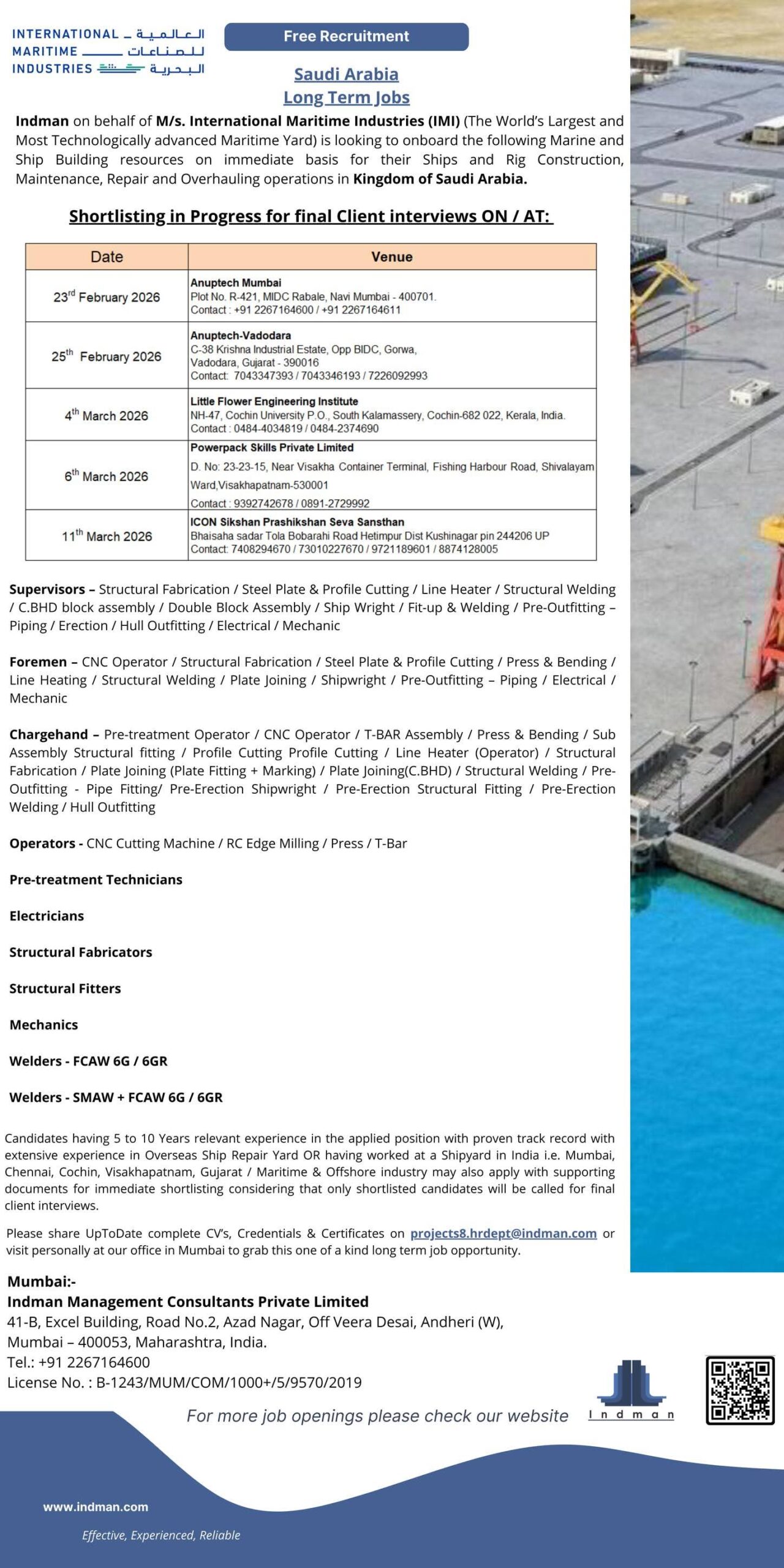 The candidates with Gulf experience are preferred. Attractive Salary package with Free Accommodation will be provided by the company itself.