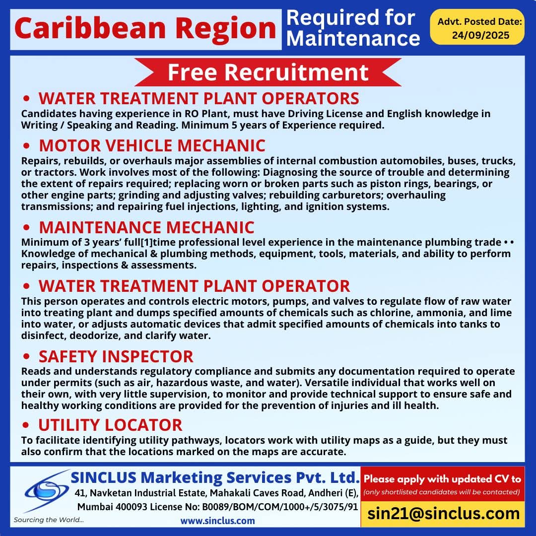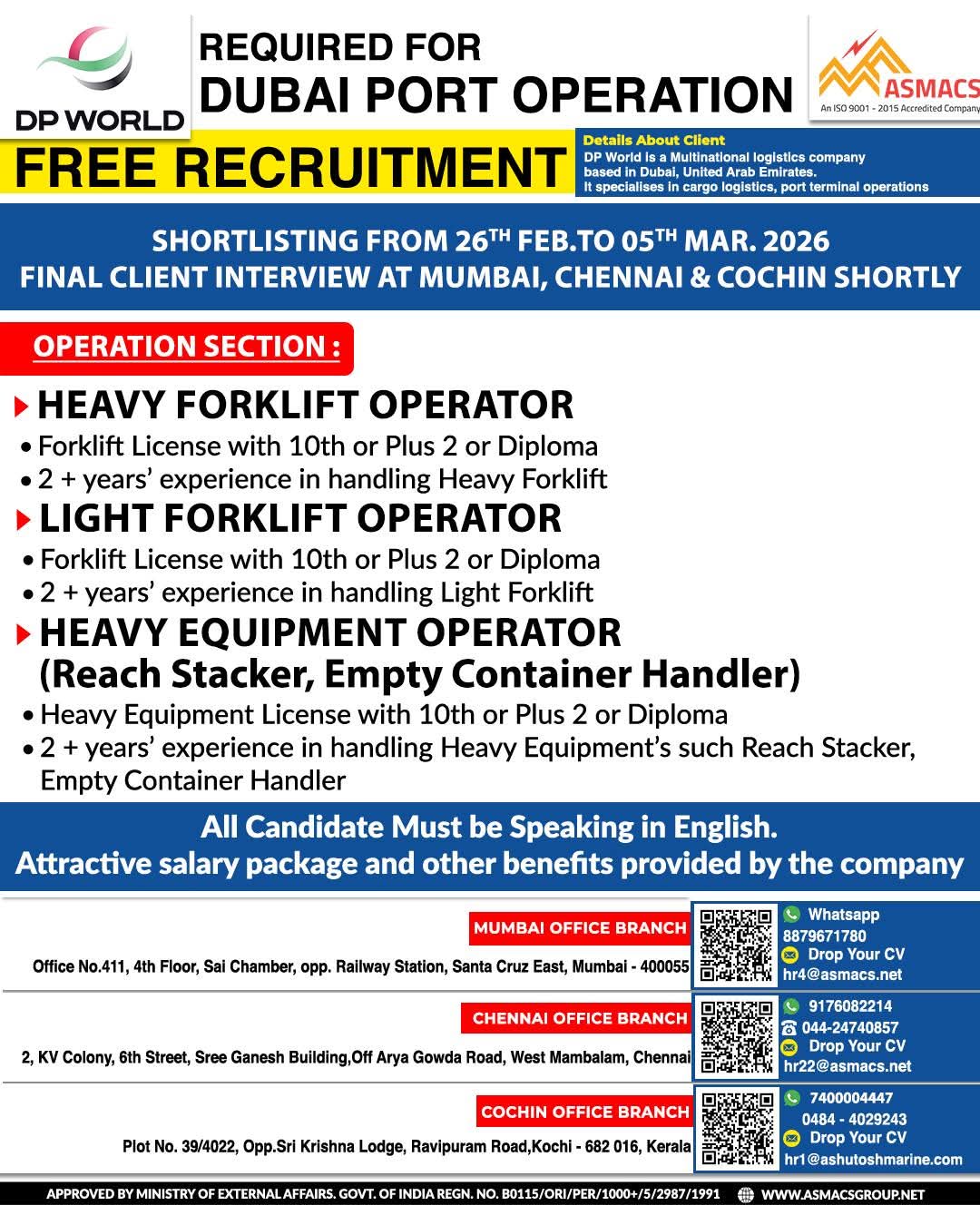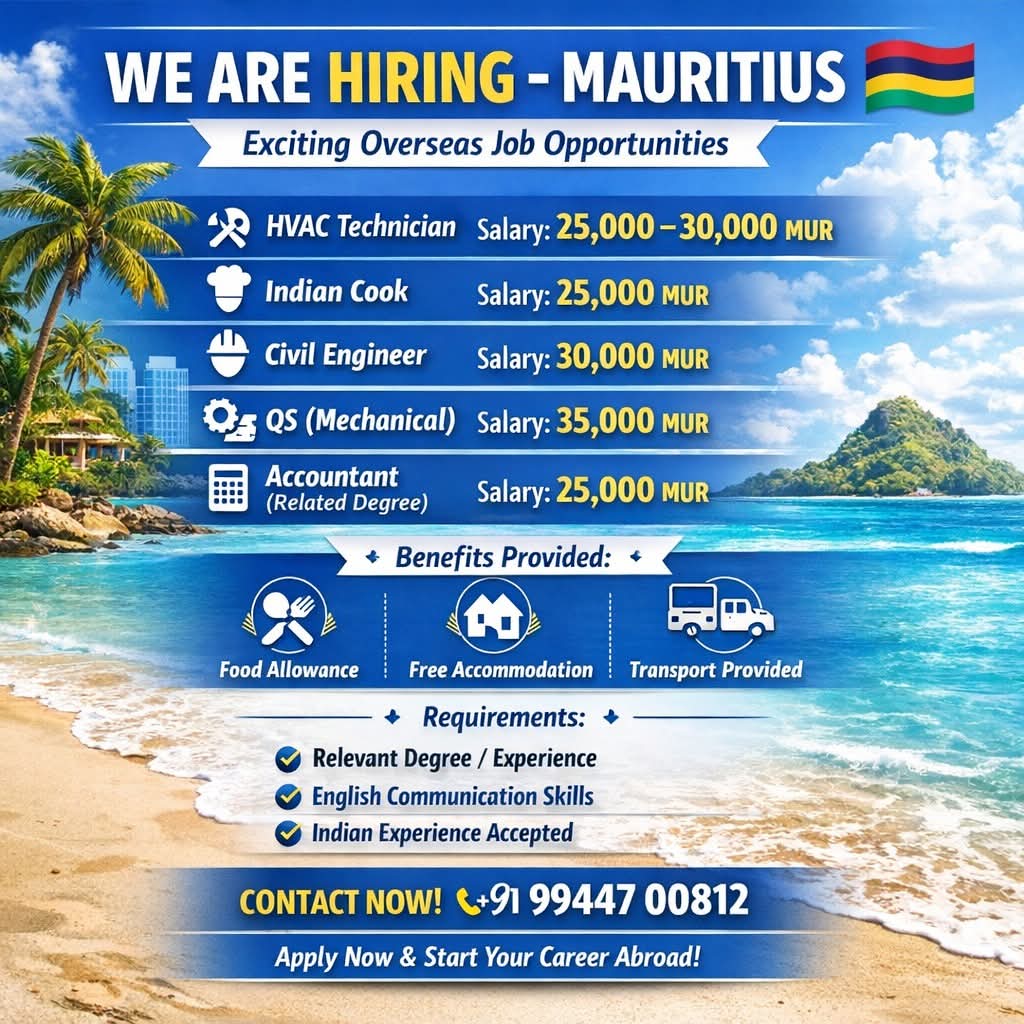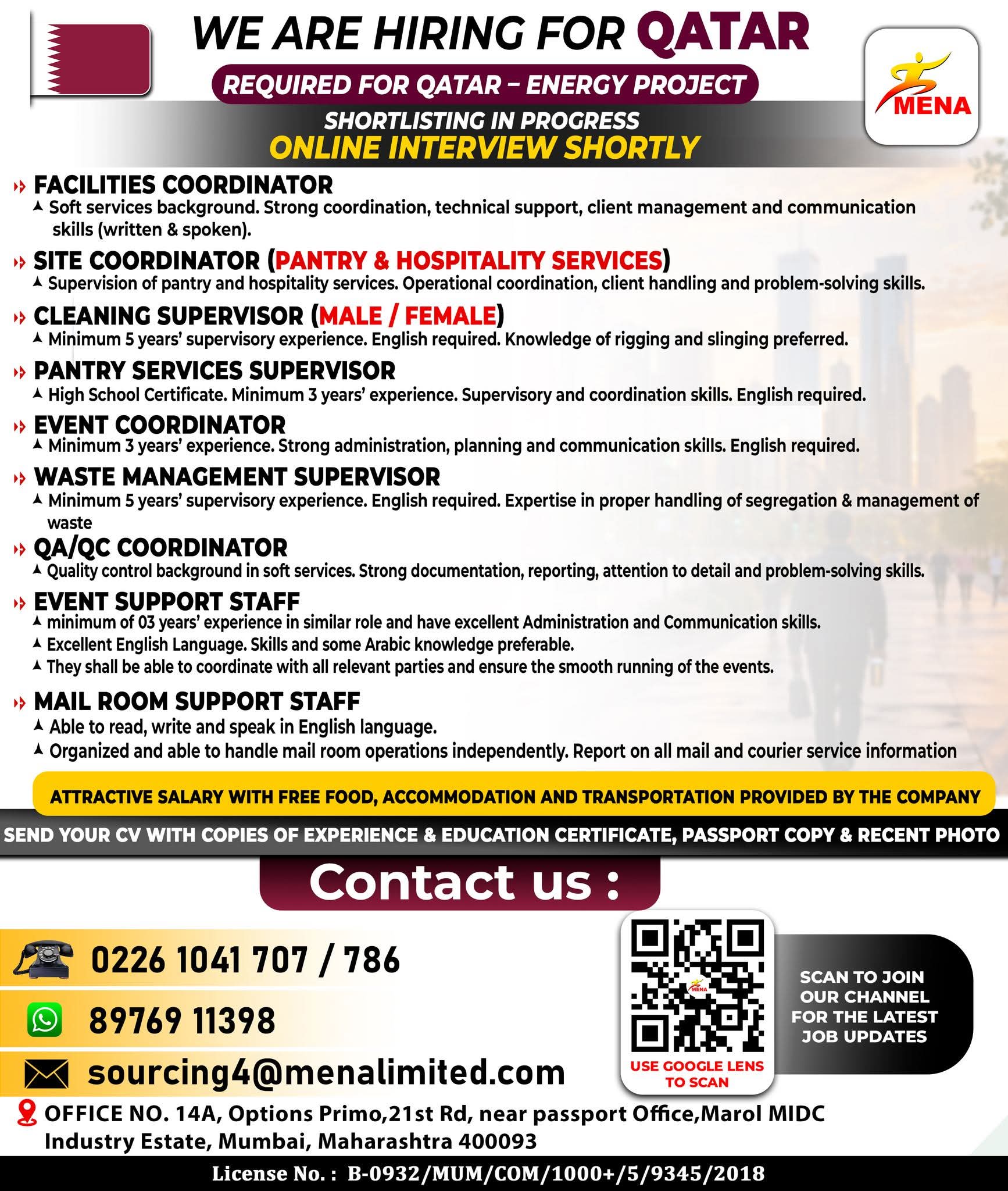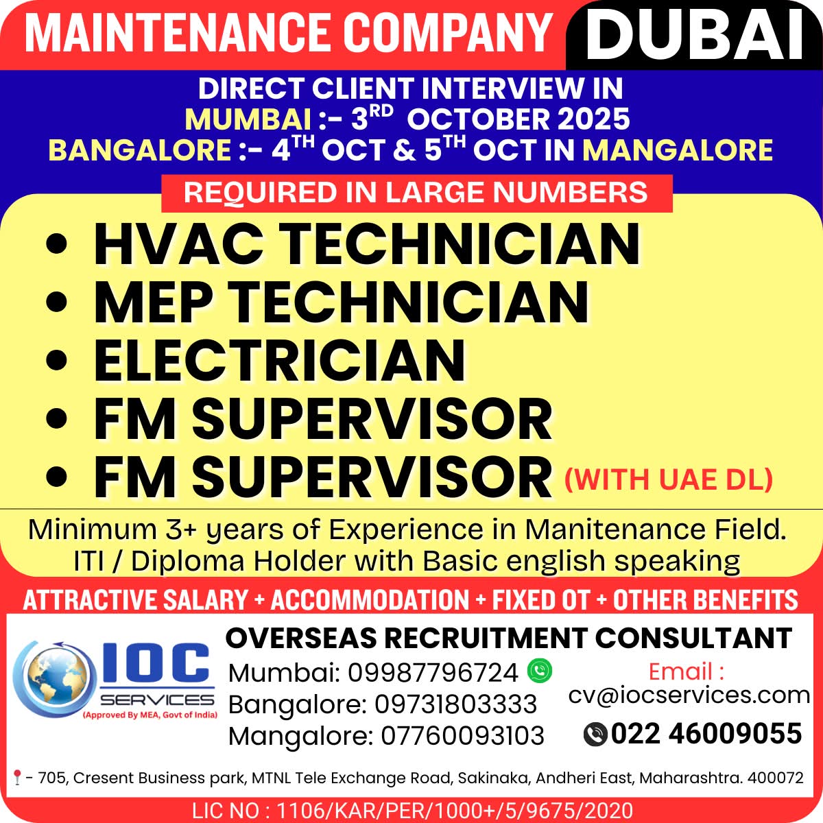 The candidates with Gulf experience are preferred. Attractive Salary package with Free Accommodation will be provided by the company itself.
