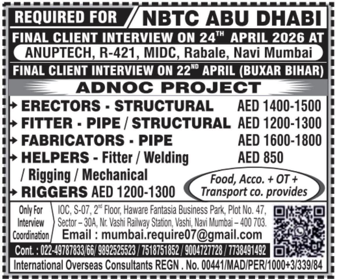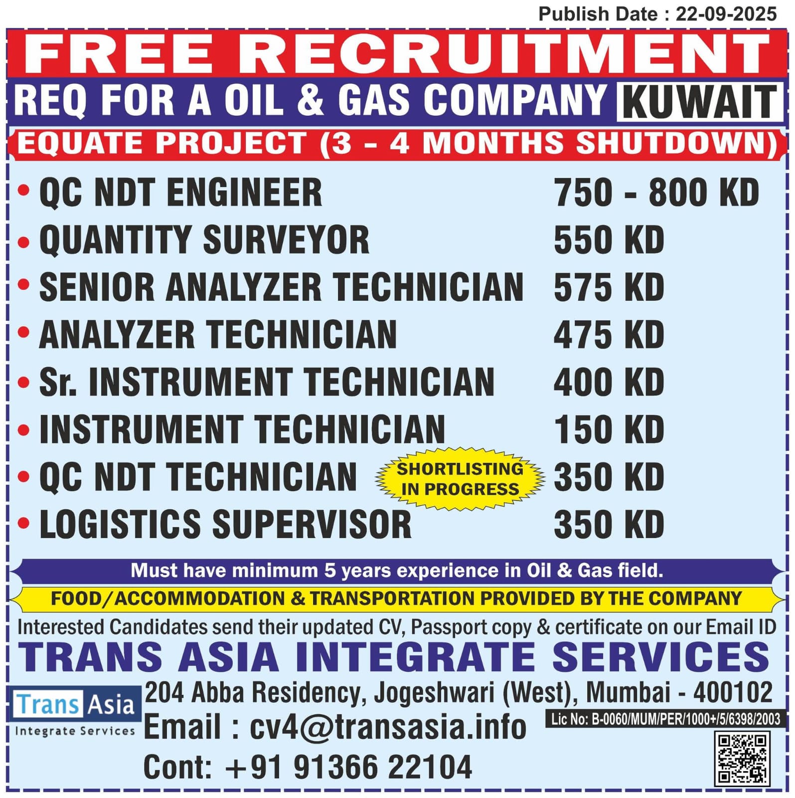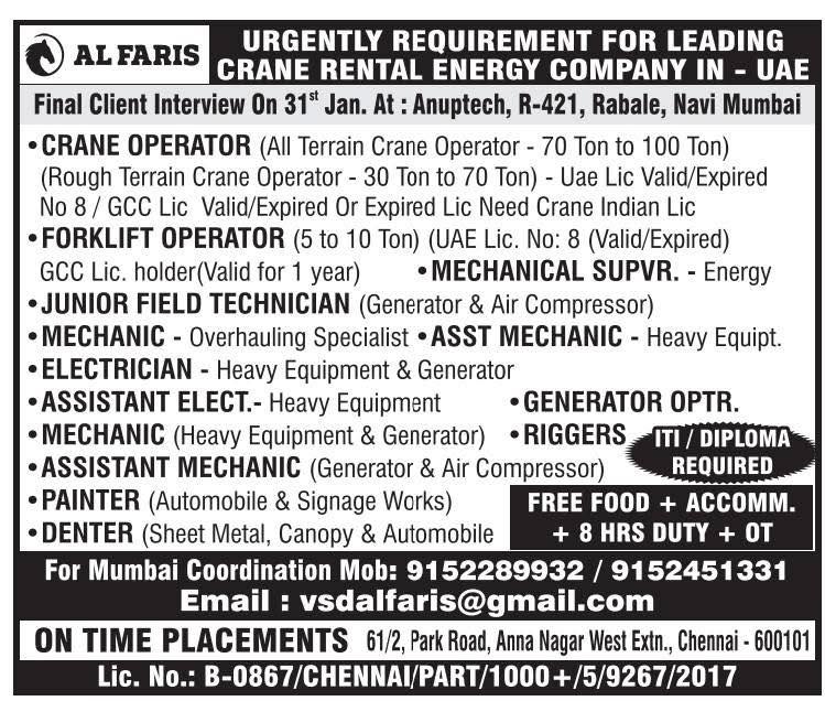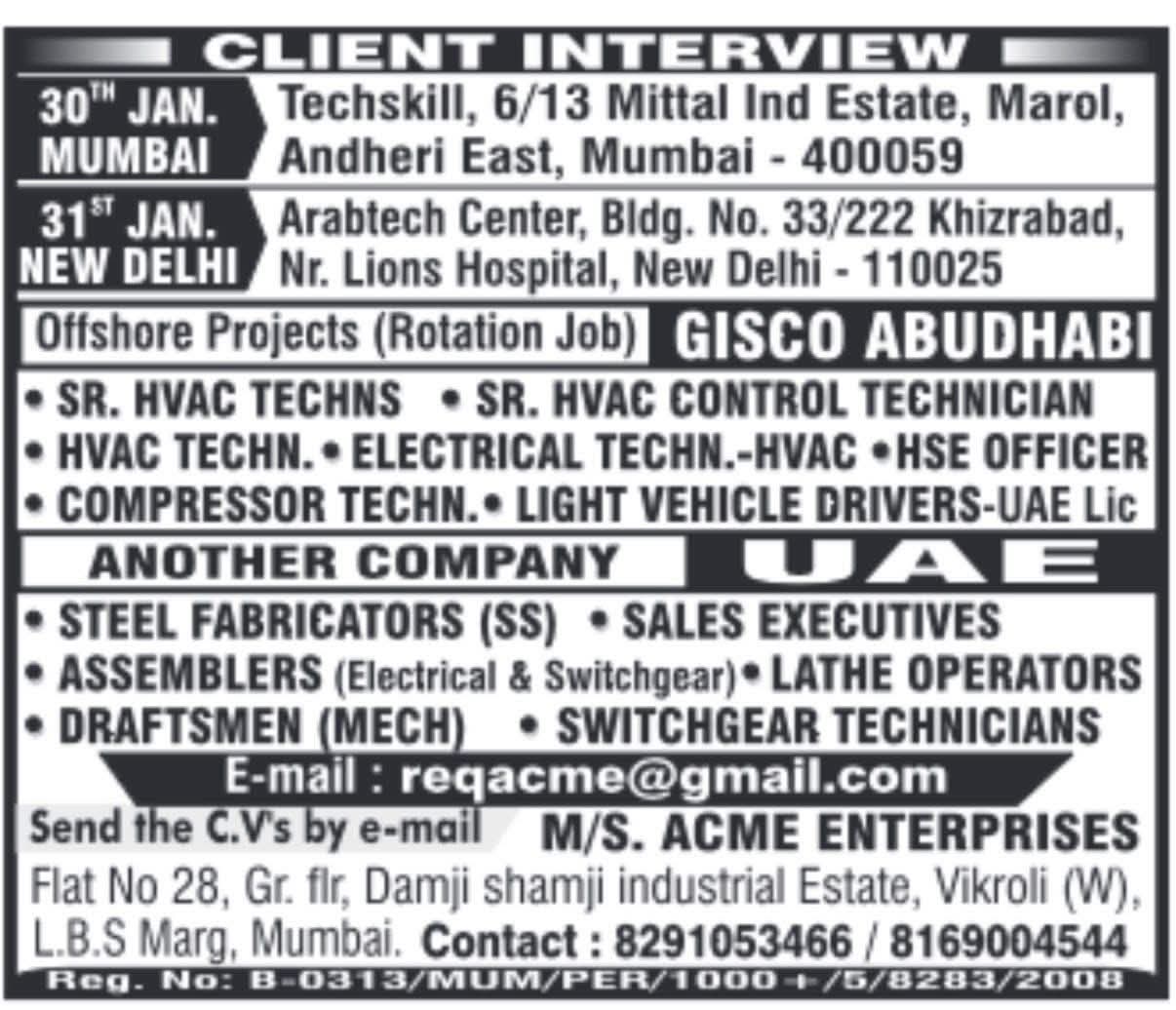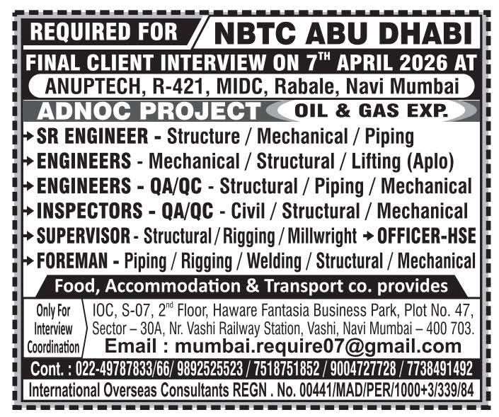 Check the latest Gulf Employment News Paper Jobs. Below you have the Complete details of the Gulf Employment news paper Jobs. Candidates who are hiring for the latest Gulf Employment Newspaper in Mumbai Post which is recently posted in this Site. Here we are Updating the Complete details of the Job recruitment like Job Description, No. of job vacancies Educational criteria, Qualification, required Experience, salary Offered etc..,. Presently 8 Various latest Job Employments are available at UAE and 10 latest Job Employments are available at middle East. Eligible and Interested candidates can apply for this Job recruitment. Check the huge latest gulf job vacancies that we have been posting regularly in this site. You can scroll to check the Check the Complete recruitment details.
