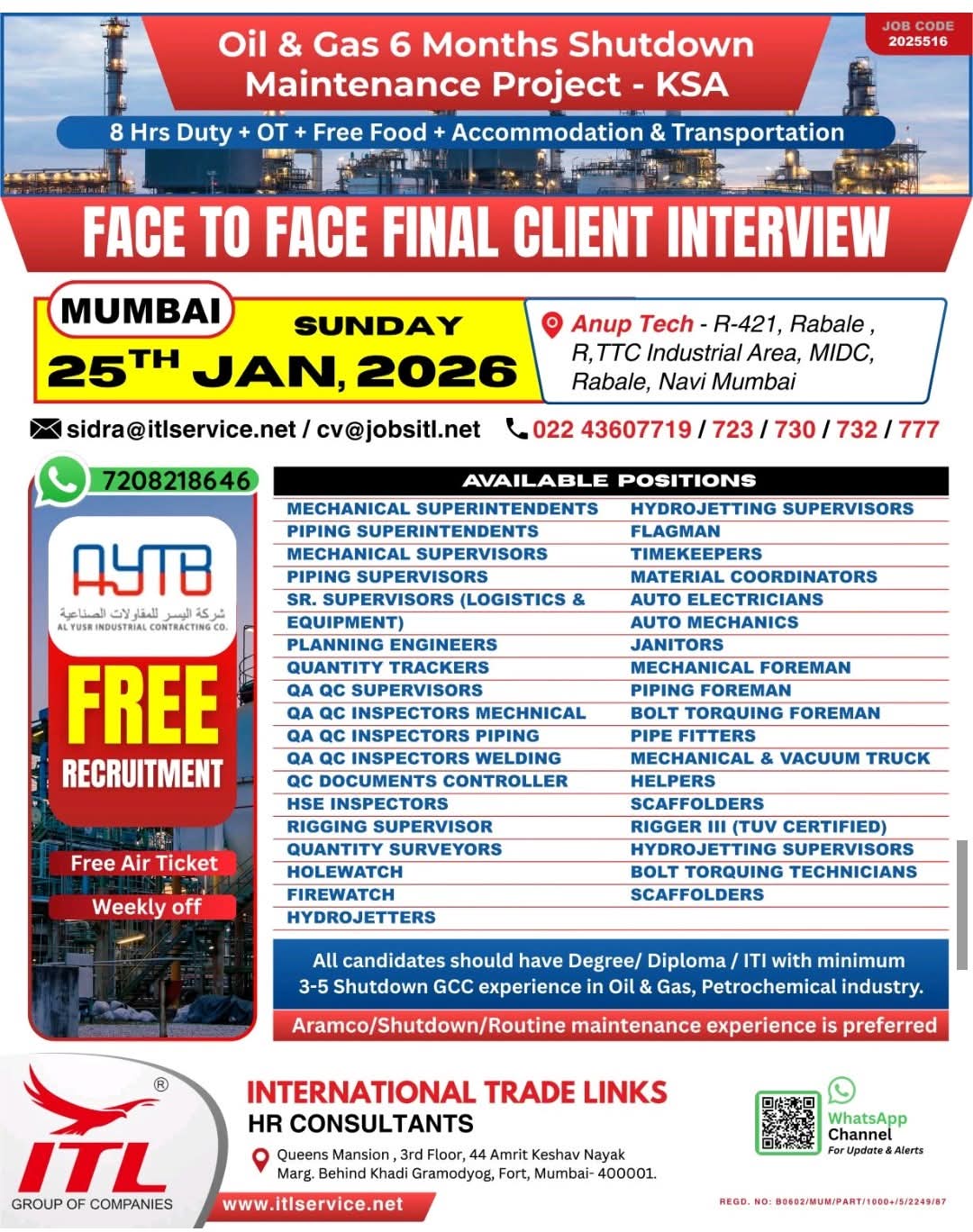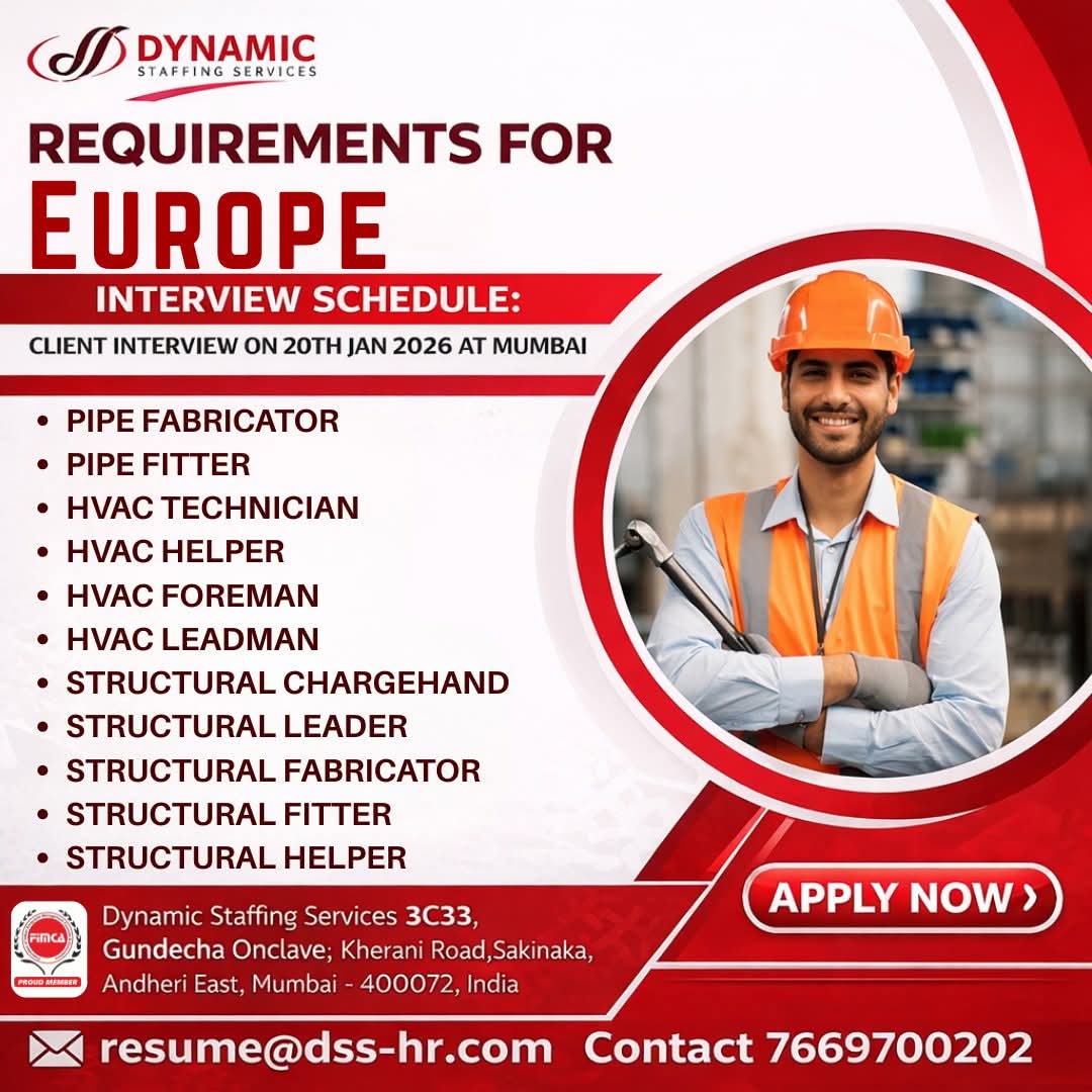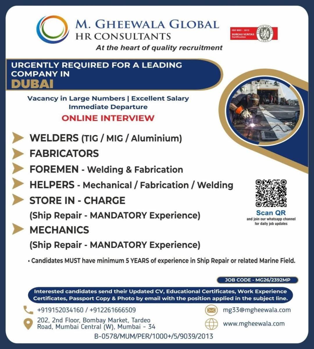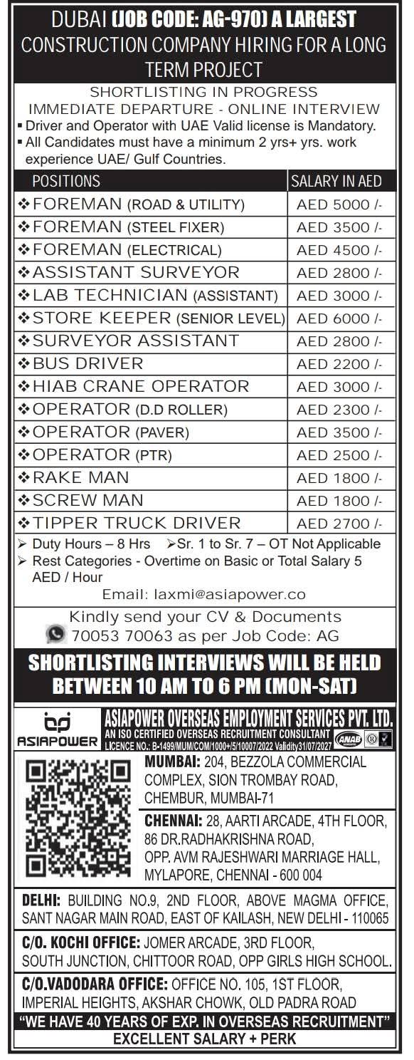 Hiring for multiple positions like Tile Mason,Shuttering Carpenter,Pipe Fitter,Plumber etc.Hiring for large Numbers.Immediate hiring.
