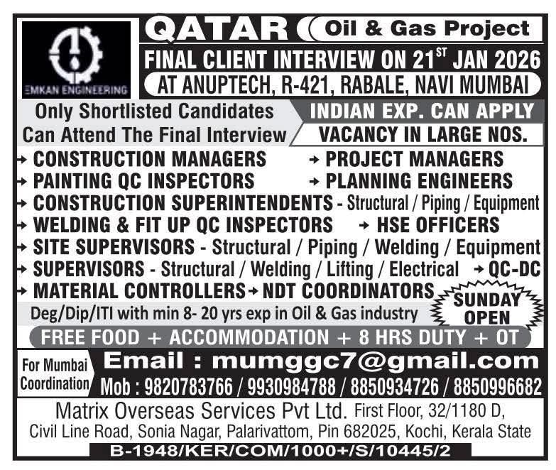 Checkout LATEST GULF EMPLOYMENT NEWSPAPER JOBS