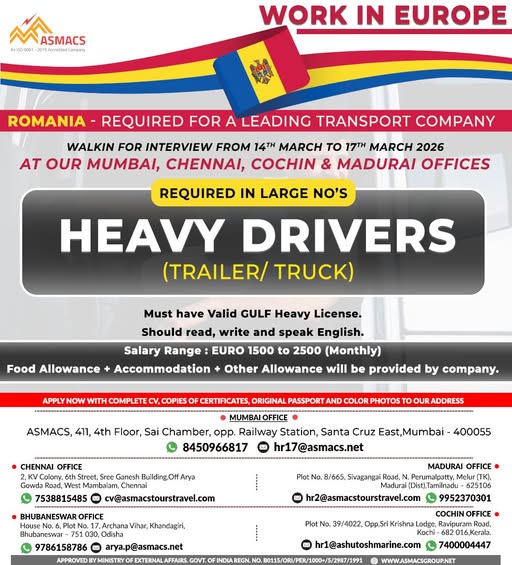 0 Passport validity should be min 2.5 years. VACANCY IN ‘ a,