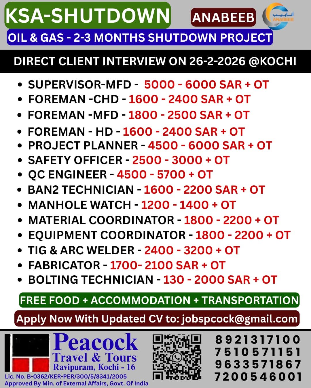 Many overseas recruiters conduct Gulf jobs walk in interview in Cochin for large requirements in oil and gas, construction, maintenance, hypermarkets, hospitals and facility management. Mailyourjob.com lists these GULF JOBS WALK IN INTERVIEW IN COCHIN posts under the “jobs in cochin” category, where you can check date, venue, position list and consultancy contact details. These posts often cover multiple Gulf job openings like technicians, drivers, engineers, supervisors, helpers and hotel staff for Qatar, Saudi Arabia, UAE and Oman.gccwalkins+3