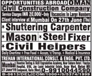 The interviews for Gulf jobs are conducted at different locations in India regularly.