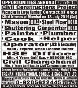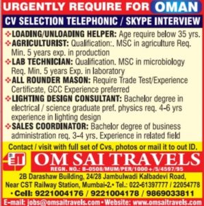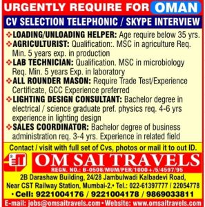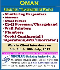 NEW JOBS IN MUSCAT OMAN – Shortlisting in progress Interested Candidates may walk-in with their Updated CV, Passport, certificates Etcc at FALCON SERVICES (Lic. No B-0349 / MUM / PER / 1000 + / 05 / 194 / 1984) 10 valmiki, Next to Bombay college of Pahrmacy, sunder nagar, CST Road, Kalina, Santacruz (E), Mumbai – 400 098. Company will be Provided Excellent salary, Free Food, accommodation, transport and other benefits for the Candidates who are Selected in the Job recruitmentEligible and Interested candidates can Send their Cv To the Email ID : 17013@falconservices.in.