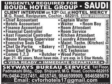 – Must have min. 2 yrs exp. in 5 Star Hotels.