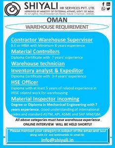 WALK IN INTERVIEW AT CHENNAI FOR OMAN Post date:19-02-22 Last date:25-02-22 Related PostsANUPTECH INTERVIEWSNRI TIMES GULF JOBSSHIPYARD JOBS